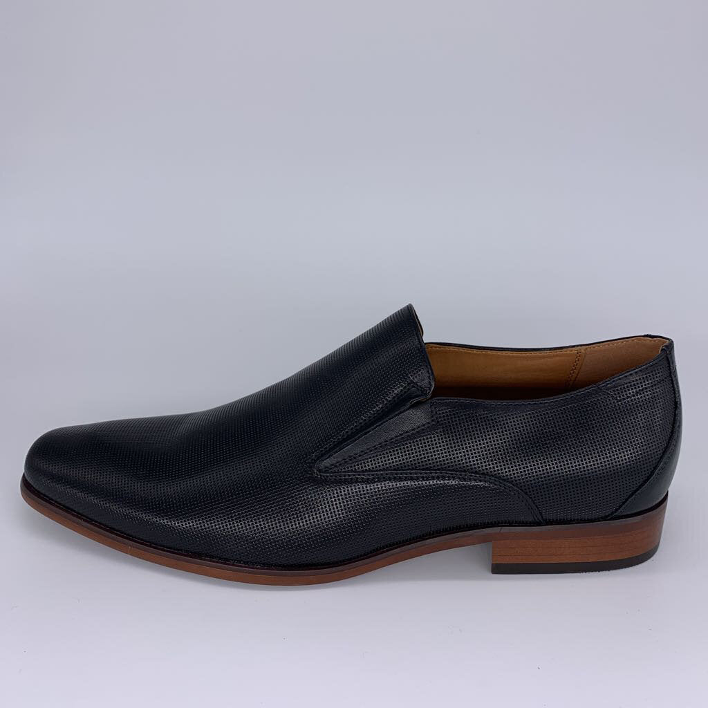 Black loafers with rubber soles.
