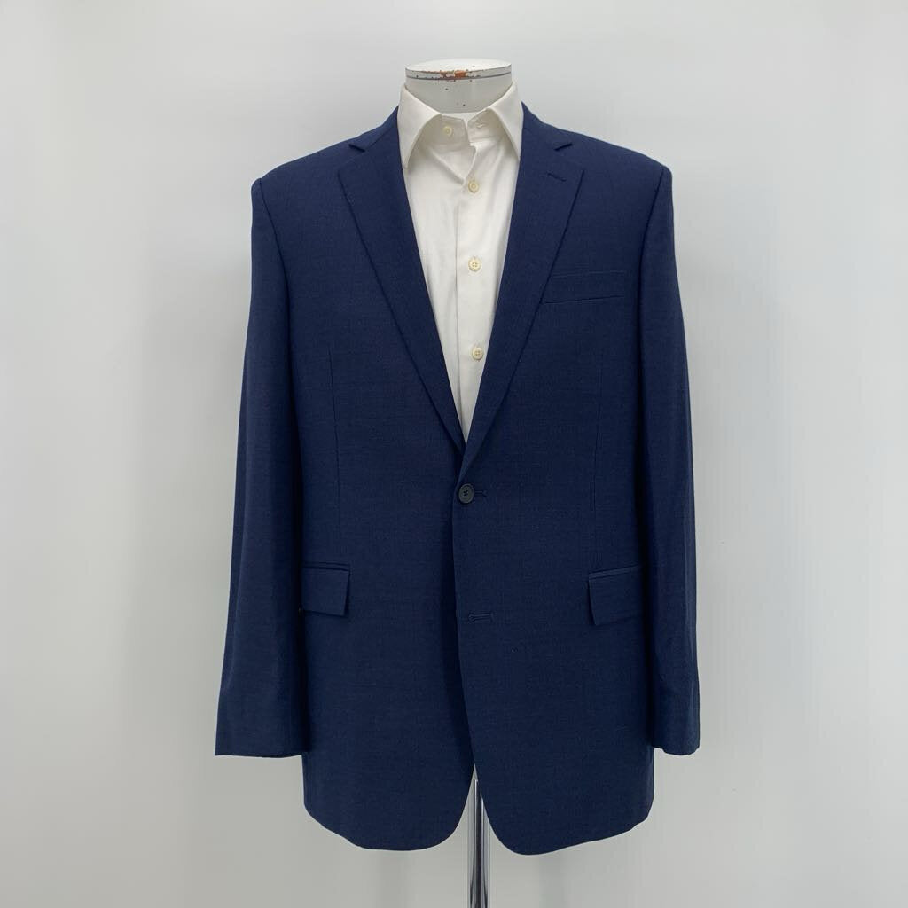 Navy blue suit. Subtle plaid pattern. Loro Piana fabric, canvas construction. 3/4 lined. 2 button, notch lapel, single vent. MSRP $1398.00.