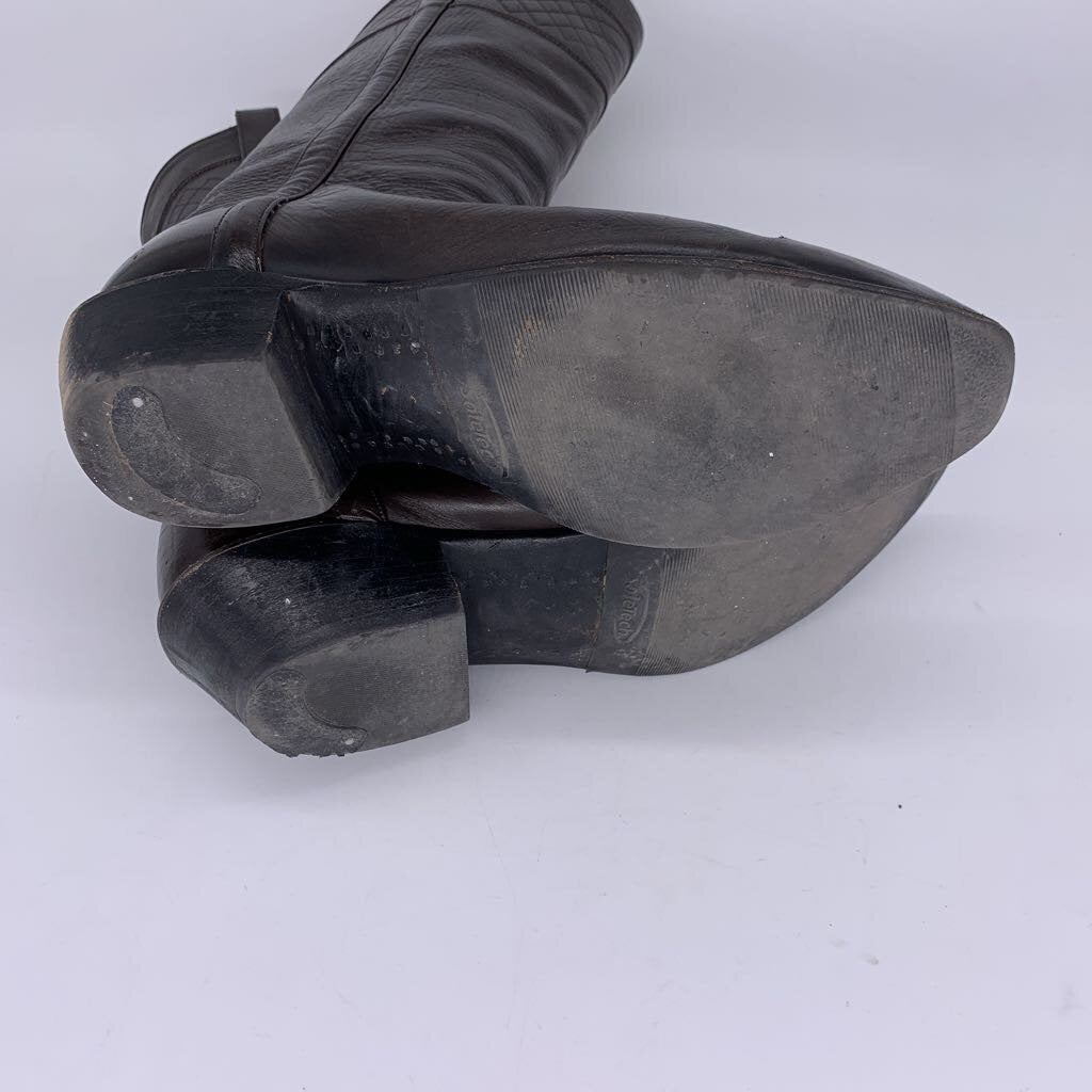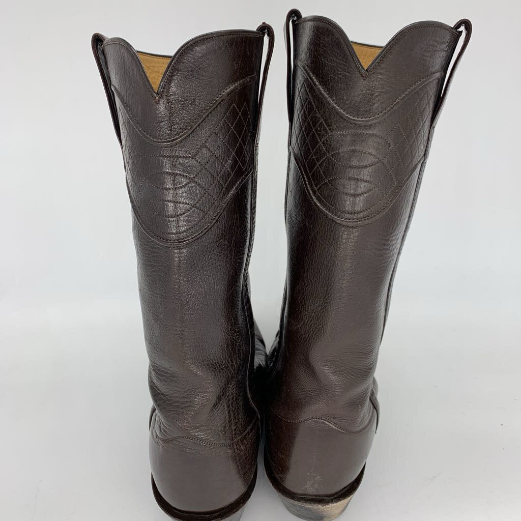 Brown leather Vintage Lucchese Classic Handmade western style boots with soft leather uppers, and stitching details at top.