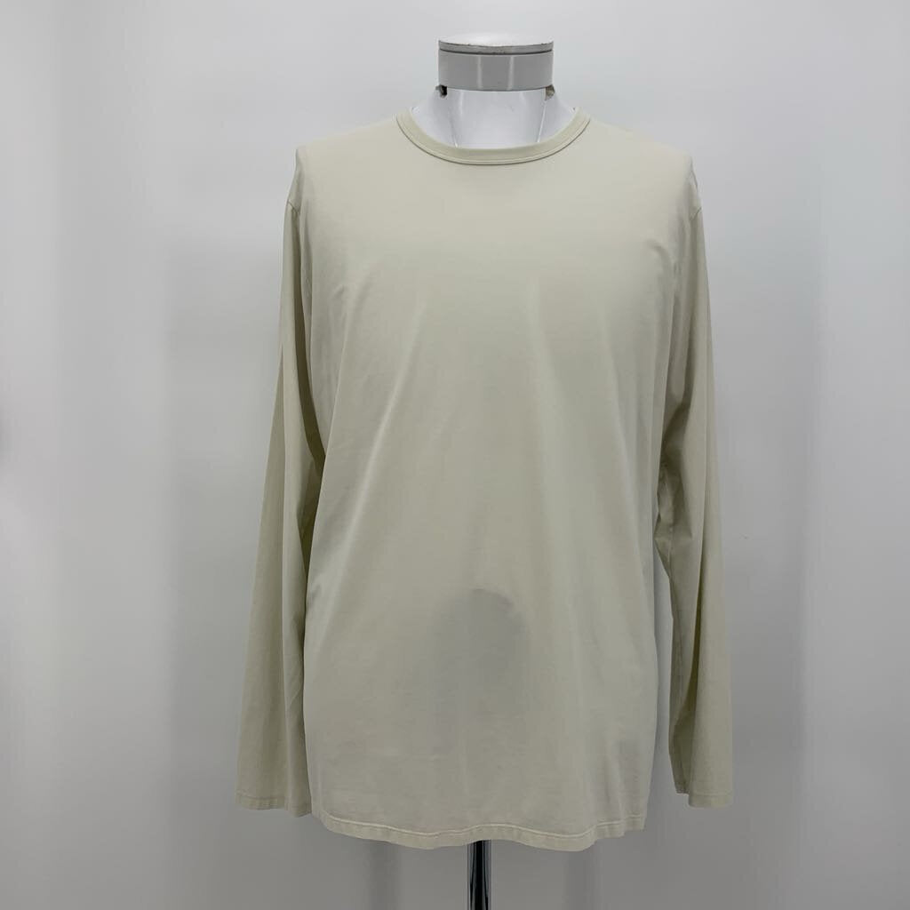 Cream crew neck long sleeve athleisure style t-shirt.