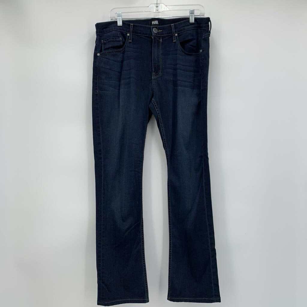 Dark wash five pocket jeans in high stretch. Tagged "Federal" fit.