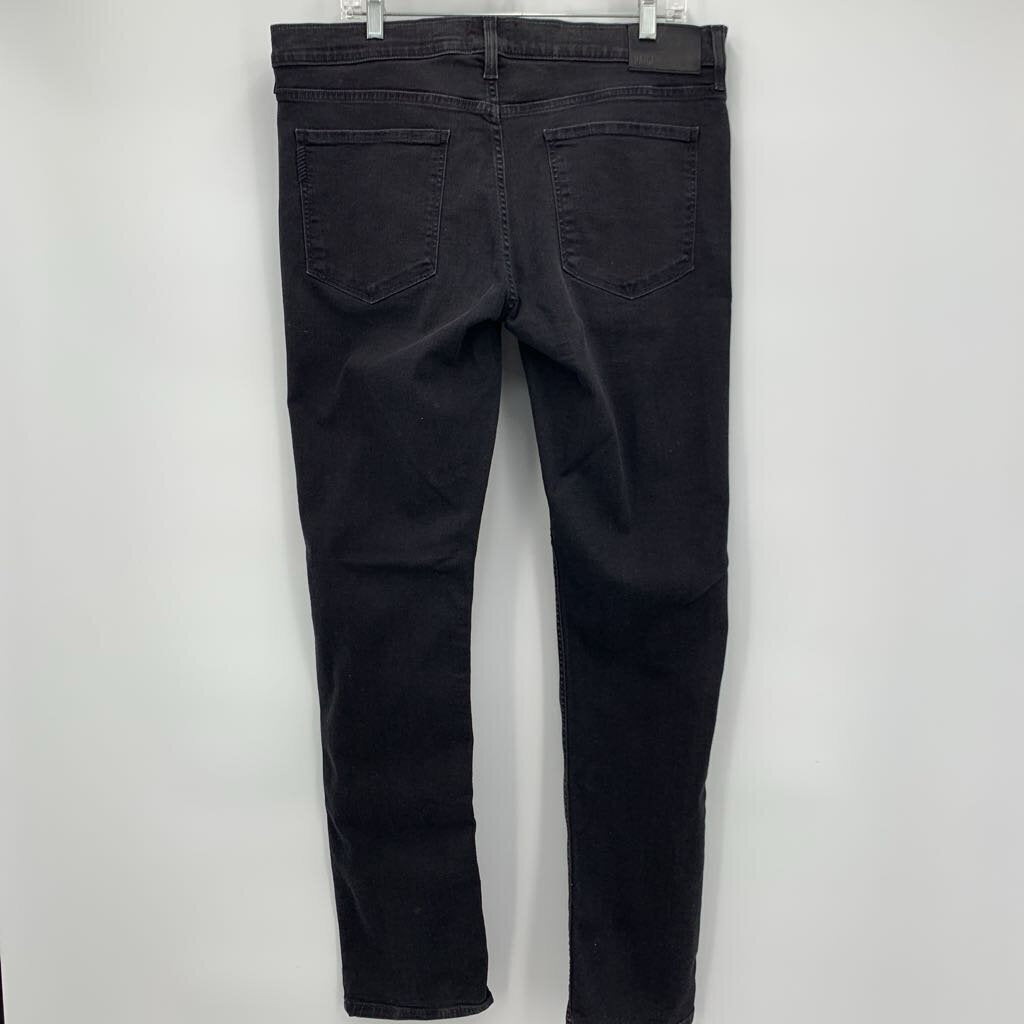 Black denim five pocket jeans. Tagged "Lennox" style.