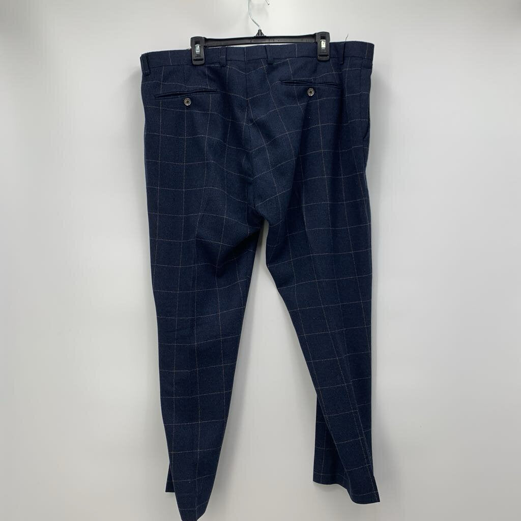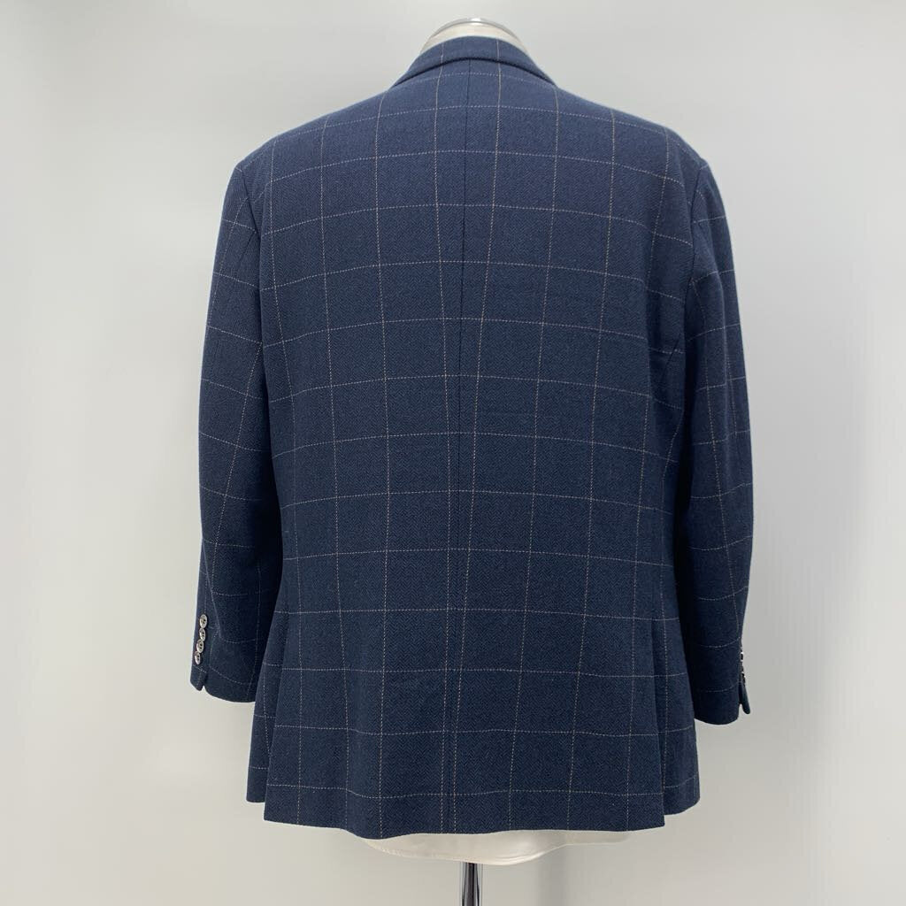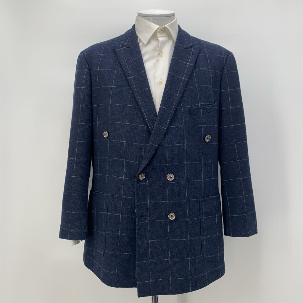 Navy plaid flannel double breasted suit.