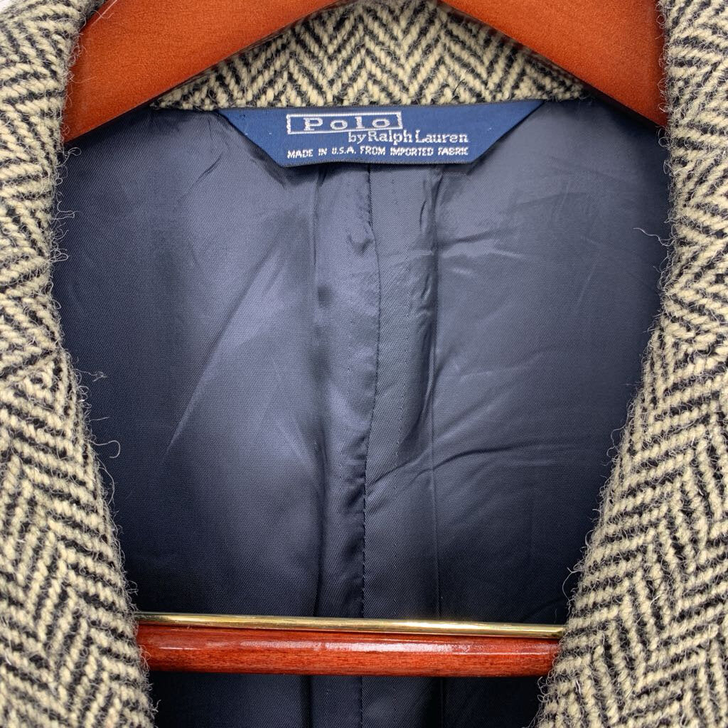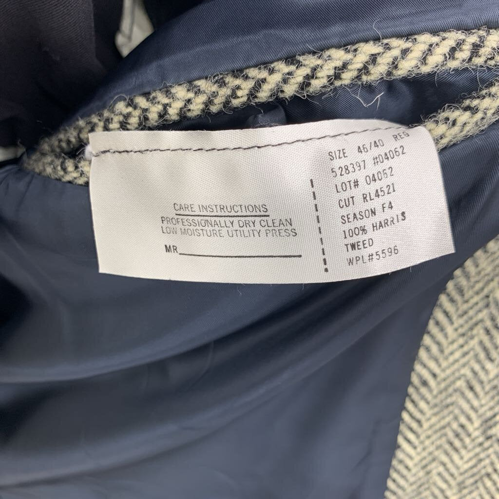 Grey herring bone 100% Harris Tweed suit. 4-roll-3 jacket with notch lapel, flap pockets, and double vent. Includes vest. Pleated and cuffed wide fit pants. Extremely heavy weight.