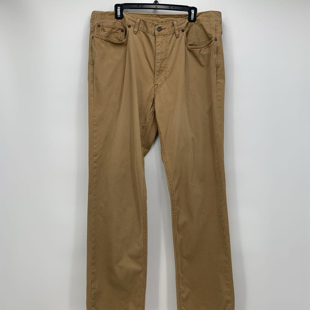 Khaki 5-pocket chino pants.