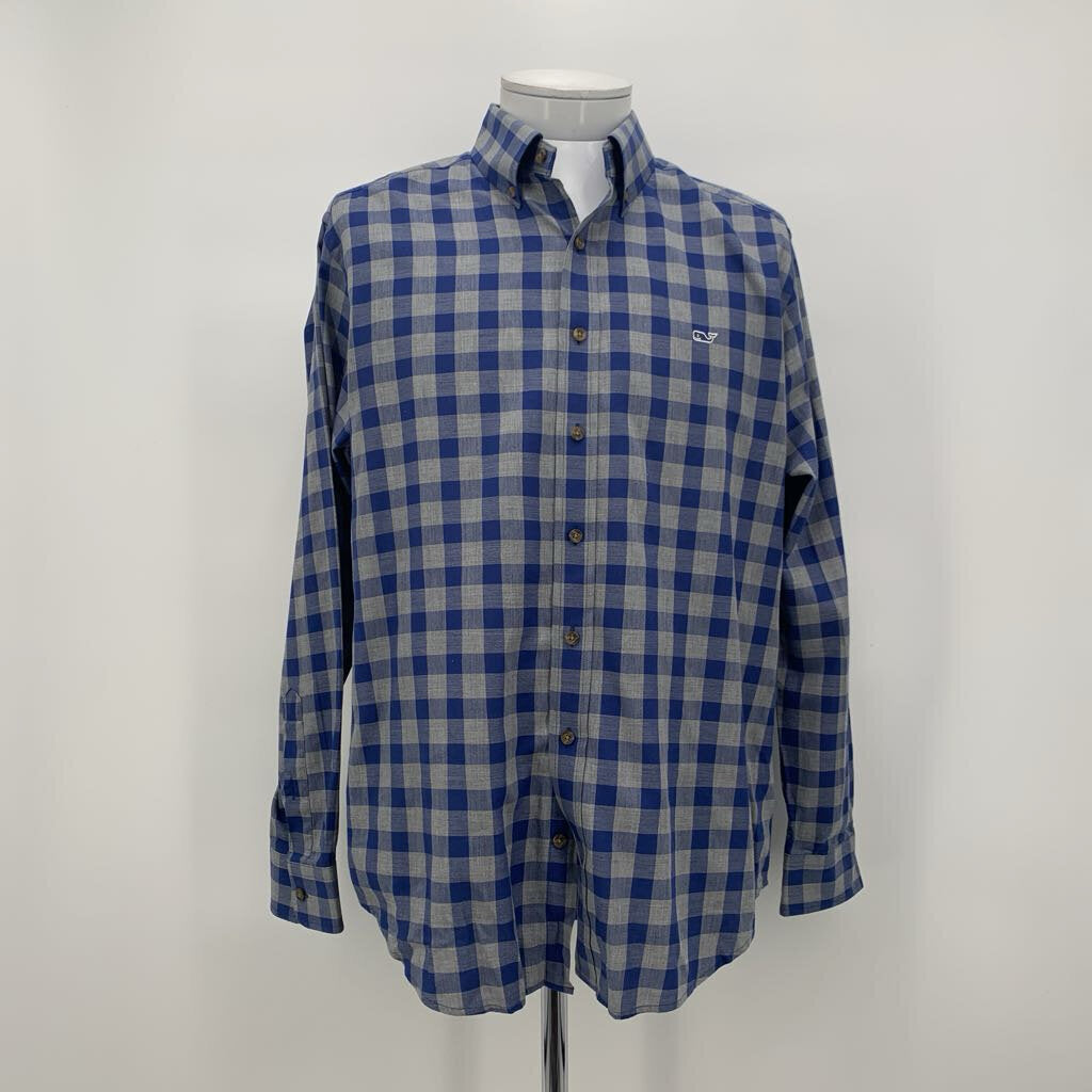 Blue and grey checkered ls button down shirt. Slim fit whale shirt.